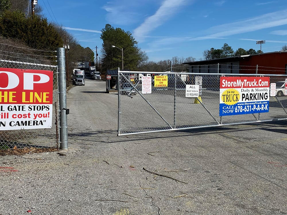 Not only are our atlanta 18 wheeler truck parking lots secure, but they are also clean and well maintained. Each monthly truck storage lot in atlanta has a dumpster for easy trash disposal.